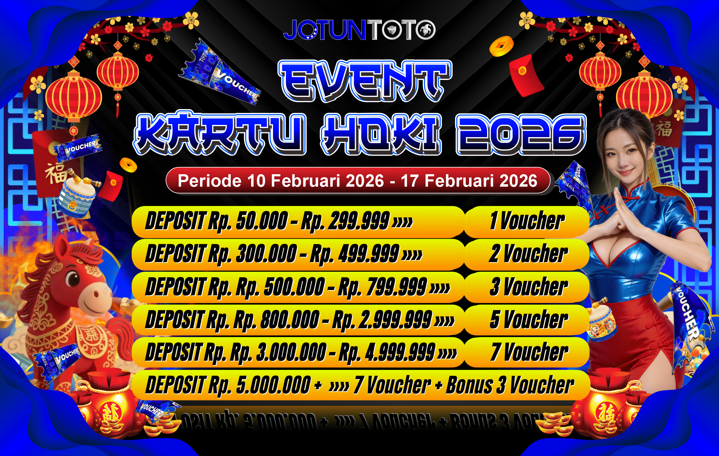 Selamat datang di JOTUNTOTO - Bandar Togel Online, Live Casino, dan Slot Online Terpercaya. Minimal Deposit Rp5.000 | Minimal Withdraw Rp20.000 | Minimal Bet Togel 100 Perak | Minimal Bet Slot 400 Perak.